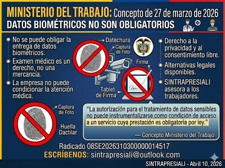 Concepto del Ministerio del Trabajo desmonta a Comercial Nutresa: datos biométricos NO son obligatorios en exámenes médicos